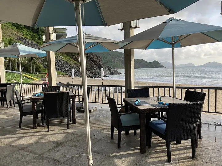 敷地の端っこの方にあるイタリアンレストランで、プールがあります。こちらは崖にあるので砂浜はありませんが、崖のしたにすぐ海が見えます。