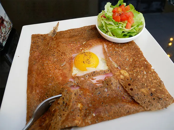 今回は、『チーズと卵とハムのガレット』(120,000VND(約600円))を食べてみました。