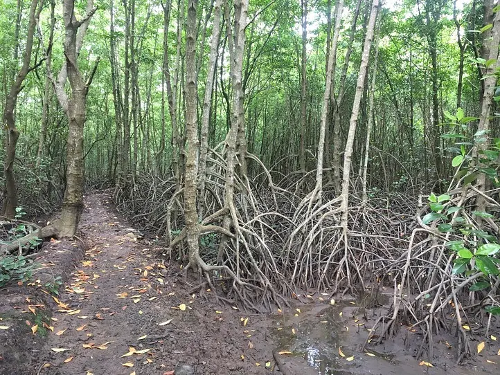 まっすぐ道をしばらくいくと、マングローブ林に入っていきます。