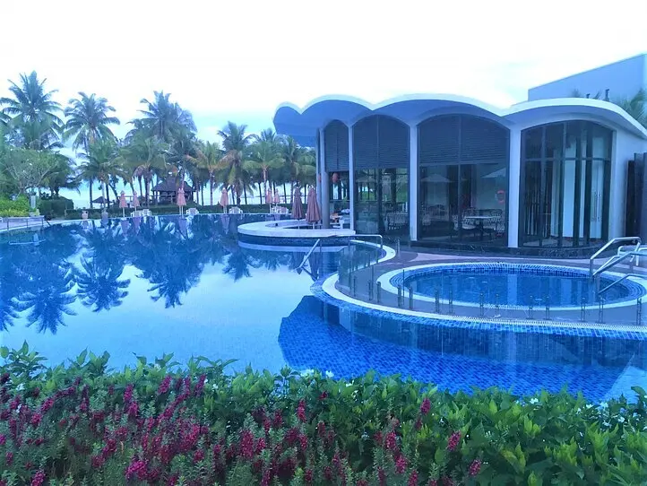 フーコック国際空港から、15分ほどの場所に位置しています。公式サイトから予約すると、空港送迎が無料でついてきます。また、ホテル予約サイトによっても、空港送迎が含まれているようですが、今回は前泊した他のホテルから徒歩で移動できたので、利用しませんでした。