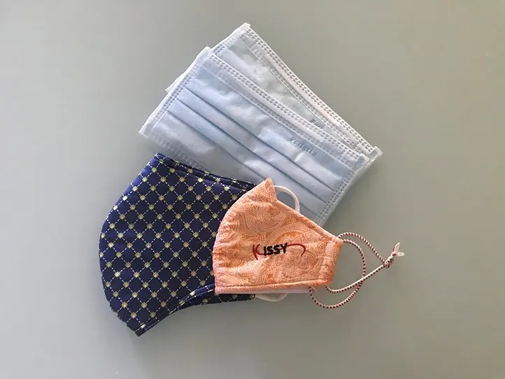 使い捨てマスク一枚、10円から30円ほど。お水も同じく30円で買えます。ウェットティッシュも旅行中のマストアイテム。香料がきつめですが、安く手に入ります。布マスクは、子供サイズから大人サイズまで種類が豊富です。大人サイズは、バイク用に顔を覆うように大きめに作られているのが特徴です。