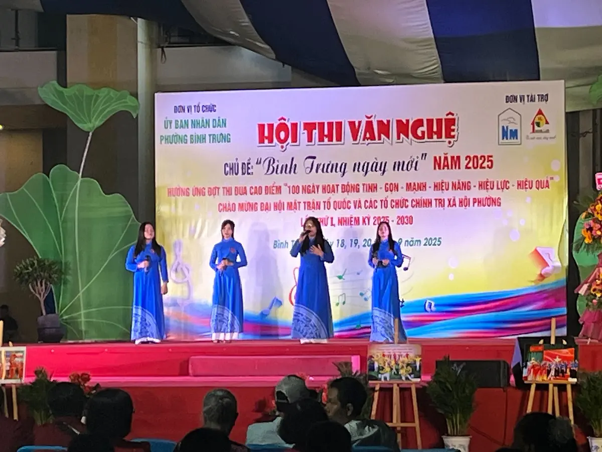 先日の夜も、そんな体験がありました。夕食の買い物に出かけるため、近所のスーパーへ向かって歩いていると、どこからか歌声が聞こえてきました。気になって声の方へ足を運ぶと、公民館のようなオープンな建物の前に特設ステージが設けられ、アオザイ姿の女性4人が歌を披露していたのです。