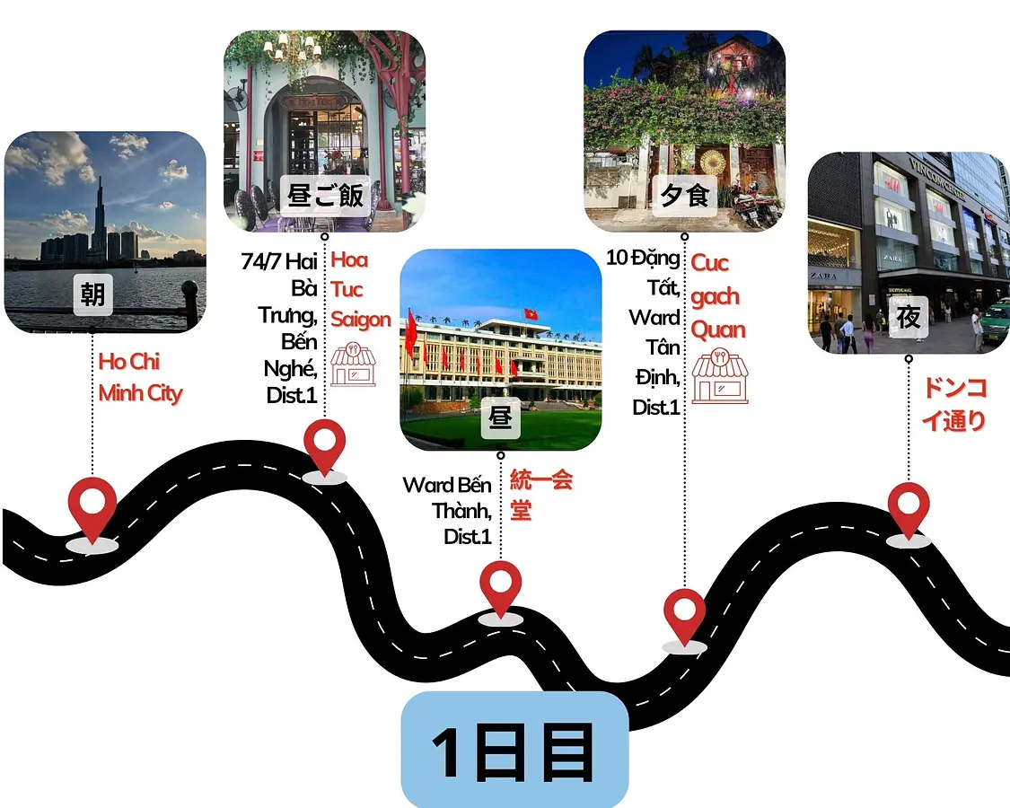2æ¥ç®ã¯ãCu Chi TunnelïŒã¯ããã³ãã«ïŒããŸãã¯Thao DienïŒã¿ãªãã£ãšã³ïŒè¡ã®èгå ã¹ãããã§ãããŒããã³ã®å€æ§ãªé åãäœæããŸãããã