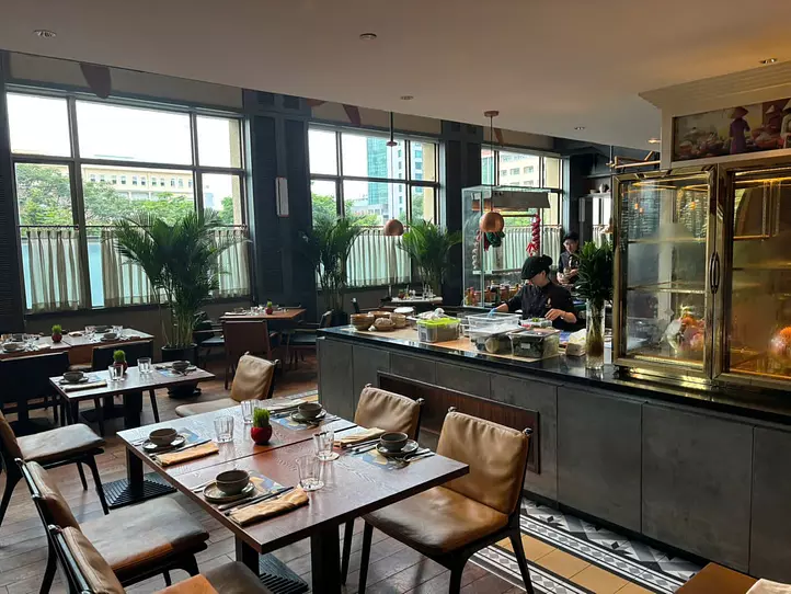 「Mezz」では、世界各国の料理を取り入れたビュッフェスタイルの食事を提供。フレッシュなシーフードや肉料理、ベトナム料理、デザートまで豊富なメニューが揃います。朝食、ランチ、ディナーのすべての時間帯で営業しており、ライブキッチンではシェフが目の前で料理を仕上げてくれます。
