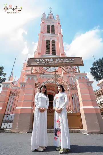 タンディン教会: ホーチミン市の3区に位置し、19世紀の終わりに建設され、1887年に完成しました。タンディン教会は、よく目立つピンク色と精巧な装飾のあるフランス・ゴシック様式の建築です。高いアーチ型の天井と色とりどりのステンドグラスの窓が、明るい空間を作り出し、自然光を引き寄せます。注目すべき点の一つは、高さ58メートルの鐘楼であり、この教会は地域で最も認識しやすい建物の一つとなっています。現在、タンディン教会は地元の人々や観光客にとって人気のある観光地です。訪れる人々は、その美しい建築を鑑賞するだけでなく、ホーチミンの文化や歴史について学ぶこともできます。