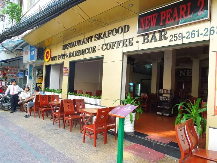 ブイビエン通りの先にある2階建ての大型レストラン。2階の屋上から見下ろすブイビエン通りの喧騒に異国を感じることができます。