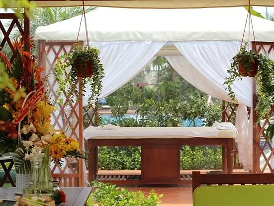 ホーチミン市内ビンタン区は、市民劇場からタクシーで15分程度のところに位置します。「サイゴンパール」という西洋風のヴィラが並ぶ高級住宅街の一角に店舗を構えた屋外型スパです。サイゴン川の畔に建つので、ここから望む景色も美観。ベトナム旅行らしいリゾート気分に浸ることができます。メニューはホーチミン市内ではあまり見かけない一風変わったマッサージがおすすめ。コーヒーマッサージ、チョコレートフェイシャル、ラベンダースパなどはいかがでしょうか。屋外は椰子の木が生い茂る緑豊かな芝生が広がり、デッキチェアに寝そべって一流のセラピストがマッサージを請け負ってくれます。ベトナム全国に3店舗を構える人気スパチェーンなので、品質、サービスも申し分なし。外国人旅行客が絶えず訪れる人気のスパ・マッサージ店です。
