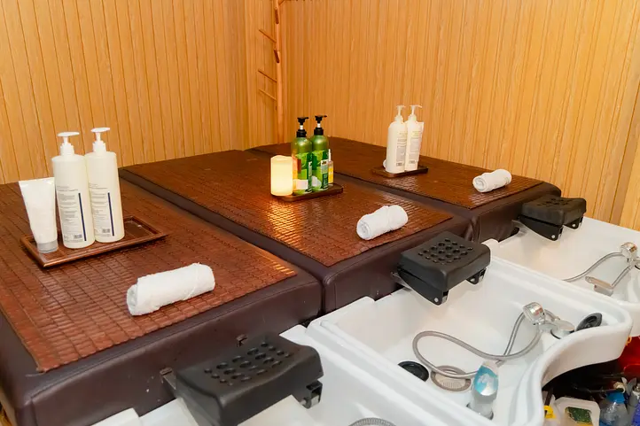 ベトナムではスパが日常に溶け込んでおり、"町スパ"と呼ばれるようなローカル色の強い店舗も多く存在します。ラムニュンスパの1階もそんな雰囲気で、どこか懐かしく温かみを感じさせる空間です。
