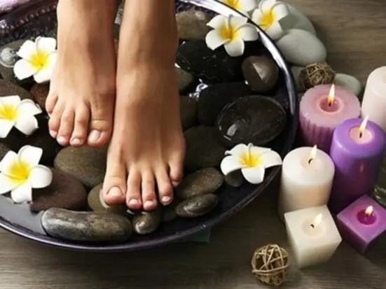 ペディキュア(足のお手入れ)とジェルネイル、フットマッサージが付いたペディキュアのレギュラーコース。
