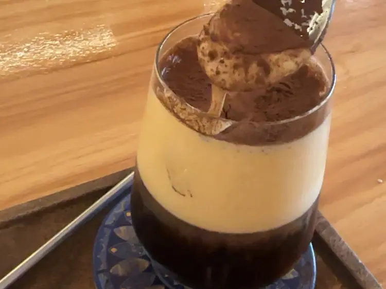 ベトナムの伝統ドリッパー「フィン(Phin)」を使って抽出し、卵黄と練乳を泡立てたクリームをのせると、まるでティラミスのような味わいに。