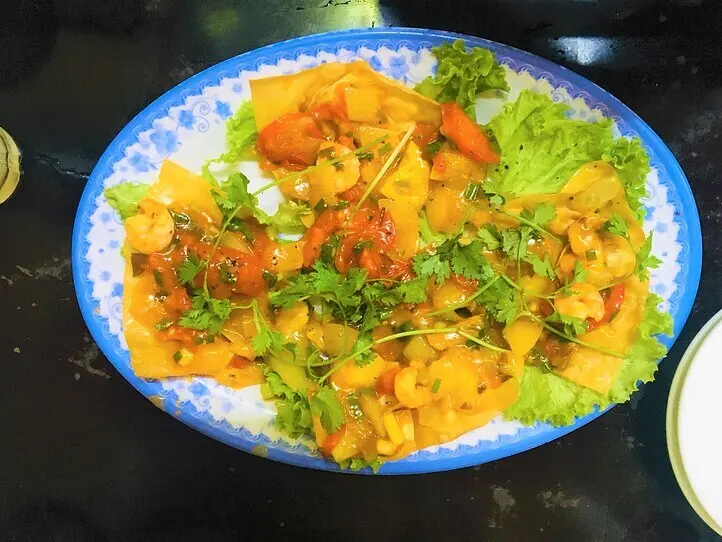 パリパリになった揚げワンタンにたくさんの具が乗っていて、「ホイアンピザ」という別名もうなづけます。皮がとても香ばしくておいしいです。