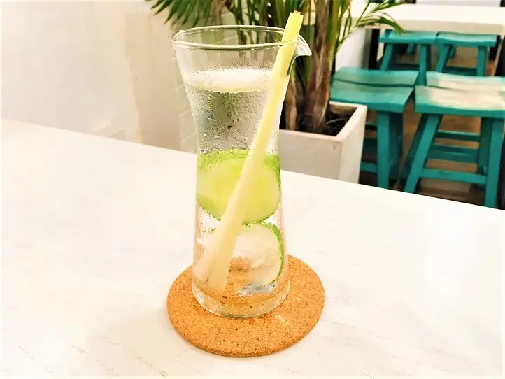 ココナッツウォーターがベースで、パイナップル、梨がブレンドされています。本来はバジルが入るそうなのですが、品切れなのでミントに変更になったとのことです。このミントがとてもおいしかったです。甘いだけではなく、後からすっきりとした刺激が来るのがとても新鮮でした。ちなみに店員さんは「新しいレシピで、リンゴも入れた」と言っていました。まだ新しいお店なのでいろいろ模索中なのかもしれません。