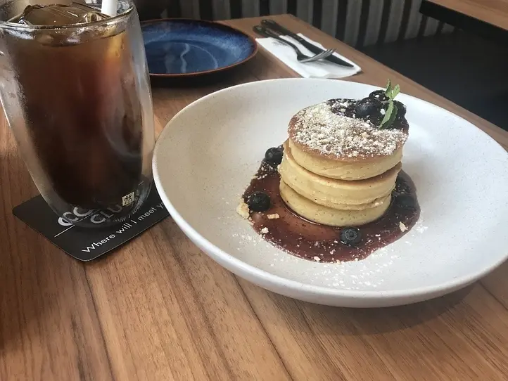 ブルーベリーのパンケーキとコールドブリュのアイスコーヒーです。