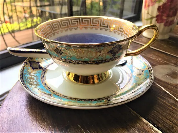 ちなみに茶器も、お茶の色に合わせてくださったようで、青い色でした。お店の方がとても親切で、お湯の追加など、常に目を配ってくださいました。