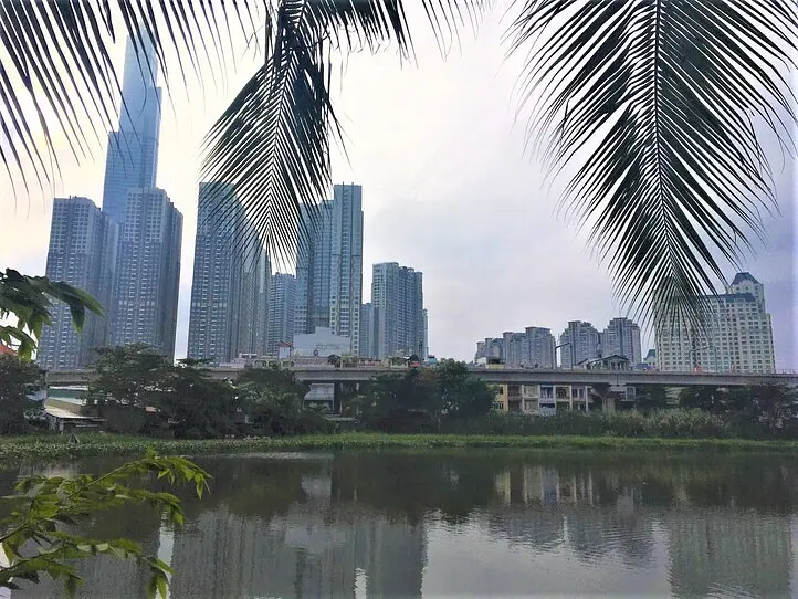池を挟んで、シティガーデンがきれいに見えます。ビンホーム、地下鉄の駅なども見えます。