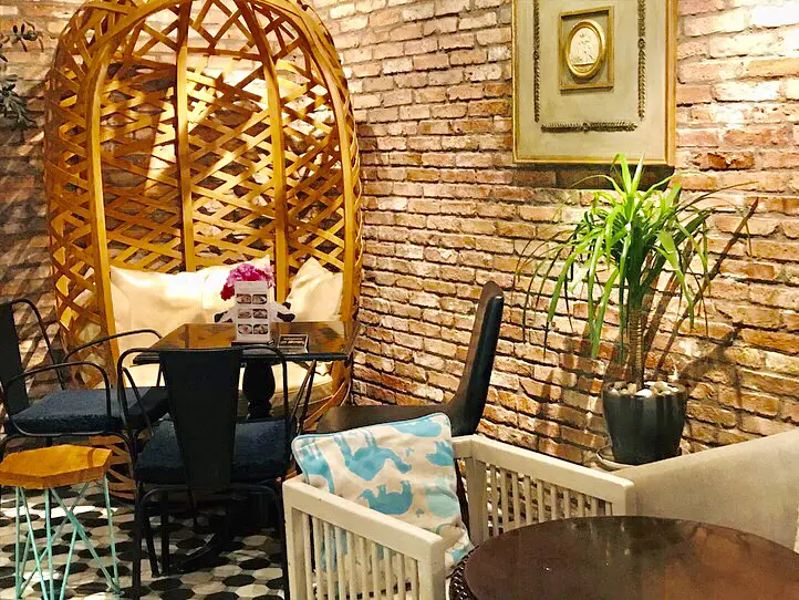 入り口すぐの天井には、たくさんの鳥かごがぶら下げられていてメルヘンチック。形の違うテーブルや椅子が程よい間隔で並べられていて、どこに座ろうかと悩むのも楽しいですよね。