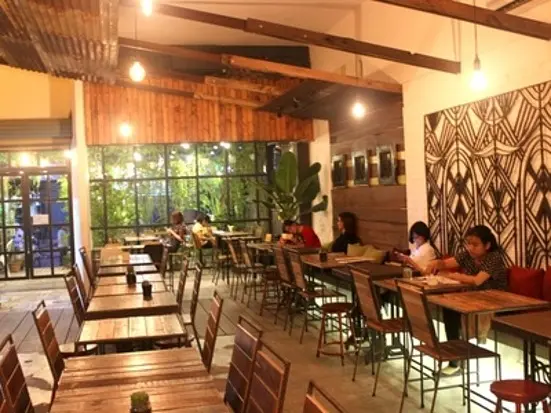 戦争証跡博物館を北上してゴートイニエム(Ngo Thoi Nhiem)通りの交差点を左に曲がったところにあるカフェ。近くには日本国総領事館もありますので、在住日本人の姿もちらほらと見かけます。ワンフロアの広々としたスペースは、仕切りがなく天井も高いので開放的です。テーブル席のレイアウトはほぼソファ席で占めているので、「ソファに座りたいけどお客で満席」ということがありません。どこでも快適に過ごせるカフェをコンセプトにしたオーナーのこだわりがうかがえます。カフェ利用では各種ジュースはもちろんカクテルもあるので、夜に訪れる若者客も多くいます。料理も定評があり、ピザ9万9000ドン、スパゲティ6万5000ドンなどが人気。