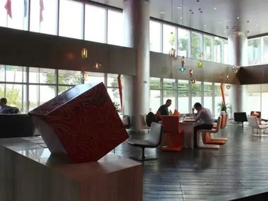 メリディアンホテル・ロビーにあるカフェラウンジ。超近代的な内装です