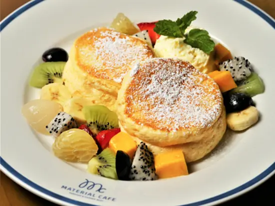 マテリアルカフェは、新鮮な素材を利用したパンケーキやサラダ。ハッシュドビーフなどが楽しめるお店。おすすめは写真映え間違いなしのスイーツ「ふわふわのパンケーキ」です。店内は遊び心のある壁があって、こちらで旅の思い出に写真を撮るのも楽しいですね。マテリアルカフェで人気のパンケーキのメニューをご紹介しましょう。