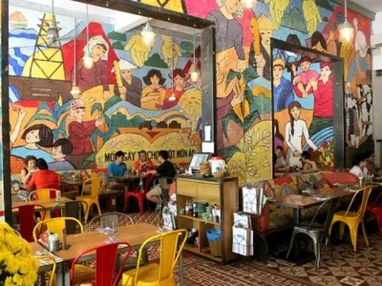 カフェの店内はすべてベトナム産のプロパガンダアートが壁に描かれている、ユニークなコンセプトカフェ。旅行中ではあまり実感はありませんが、ベトナムは社会主義国。ベトナム戦争当時はプロパガンダも盛んだったとのこと。最近はあまり見かけなくなりましたが、その名残の看板やウォールアートなどもひと昔前まではそこかしこに見ることができました。旅行者の中にもプロパガンダに興味がある方は少なくないようで、ここはいつ行っても多くの外国人でにぎわっています。場所は聖母マリア教会から統一会堂へ向かう道中。右手に芝生が広がる4月30日公園を確認して歩けば迷うことはありません。なおランチもあり。12万5000ドンで食べられます。