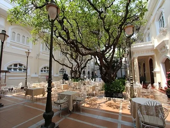 ホーチミンで最古の民間ホテルと言われている「ホテル・コンチネンタル(4つ星)」のグランドフロアにあるフレンチレストラン!レストランと言えど、ドリンクのみのカフェとしても利用可能です!コンチネンタルは映画「インドシナ」の舞台にも使われ、当時の面影が今に残ります。映画ではコンチネンタルの外周りのカフェが舞台となり、カトリーヌ・ドヌーブがカフェをした場所として知られています!現在でも各界の著名人や要人も宿泊に来る格式の高いホテルとなっています。中庭は新緑に包まれた青空が見える広場。白いテーブルクロスの上で食べる優雅な食事がたのしめます!場所は市民劇場の隣と好立地なので、宿泊先としてもおすすめできます!なおオススメメニューはフィレステーキ75万ドン、サラダ・ケイサー32万ドンはハムorサーモンを選ぶことができます。