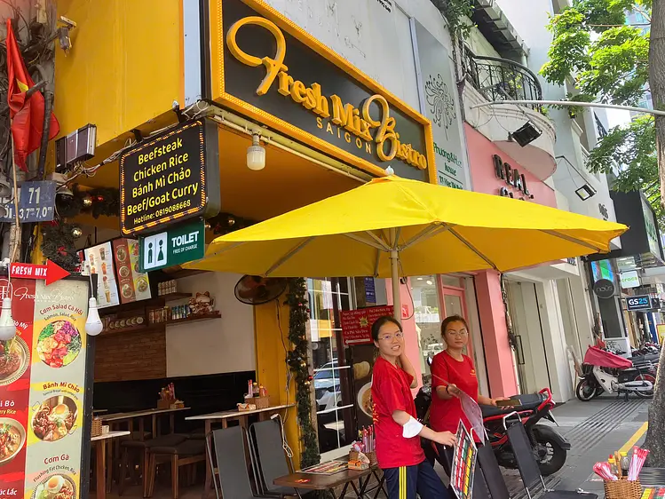 Fresh Mix Bistro Saigonは、ホーチミン市で人気のカジュアルなレストランで、特に日本人観光客におすすめのスポットです。このお店の名物メニューには、香ばしい「Bánh Mì Chảo(バインミーチャオ)」、ジューシーで柔らかい「Beefsteak(ビーフステーキ)」、スパイシーで風味豊かな「Curry(カレー)」があります。フレッシュな食材を使用したバラエティ豊かな料理は、どれも一度食べたら忘れられない美味しさです。店内は落ち着いた雰囲気で、旅行の途中でリラックスしたい方にもぴったり。観光スポットからアクセスも良いので、ホーチミン旅行中のランチやディナーにぜひ立ち寄ってみてください!