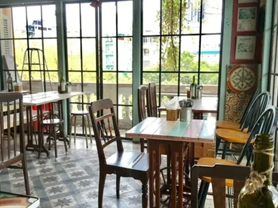 高島屋目の前、レロイ通りと交差するグエンチュンチュック通りにある、内装のおしゃれなチキンステーキ店。入り口が少しわかりにくいですが、えんじ色の"Gummy"の看板がある古い建物の3階にあります。
