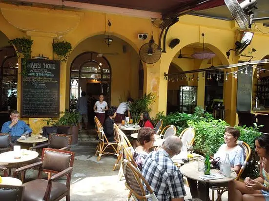 ホーチミン市内中心の市民劇場裏手の目抜き通り、ハイバーチュン通りを歩き、路地をくぐると見えてくるのがこちら。ガイドブックではフレンチ料理レストランとして紹介されていることが多いですが、フレンチというよりかはパスタなどの西洋料理が中心です。アヘン工場だった建物を改装して作ったようです。料理はアラカルトとコース料理がありますが、値段で選ぶならコースがおすすめ。前菜、メイン、スープ、デザートがついて30万ドン程度(ランチ)とリーズナブルです。ただし平日のみなので注意してください。昼時は旅行客が多く、日本人の姿もちらほら。夜になると在住欧米人でバーのように賑わっています。食事だけではなくカフェとしても利用価値が高く、自家製ケーキはコーヒーに合っていておすすめです!欧米人客と混じって過ごす時間は、まるで欧米旅行に来ているかのようです!旅行に一味加えてみませんか!