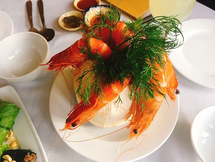 「エビのココナッツジュース蒸し」を注文してみました!値段は220,000VND(約1,100円)です。