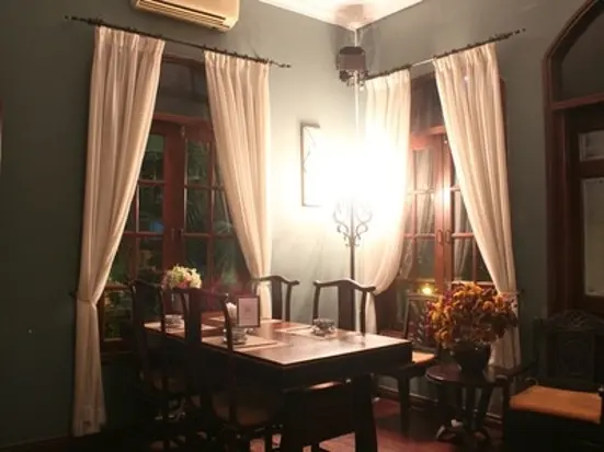 白亜の邸宅はフレンチコロニアル。ビラをレストランに改築したこちらは、化学調味料不使用のヘルシーベトナム料理を楽しむことができる人気レストラン。アラカルト、コースともに十分なメニューを取り揃えており、旅行者向けの名物料理から在住者の舌も唸らせる素朴な家庭料理まであります。いずれも定番料理にひと手間加えた創作料理が充実しているよう。売上の一部は恵まれない子供たちに寄付しているとのこと。店内は古き良きインドシナの香り感じる内装で、気品とアットホームな雰囲気が調和した不思議な空間。旅行者にとっては、フレンチビラという文句なしのムード。恋人夫婦、ファミリーと客層問わず料理とともに満喫することができるはずです。