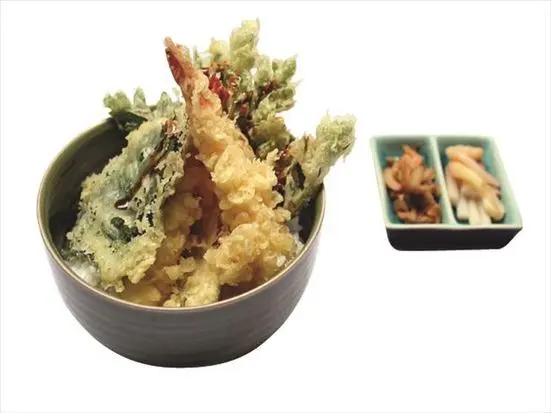 どんぶりから溢れる天ぷら。もちろんザクザクの歯ごたえです!