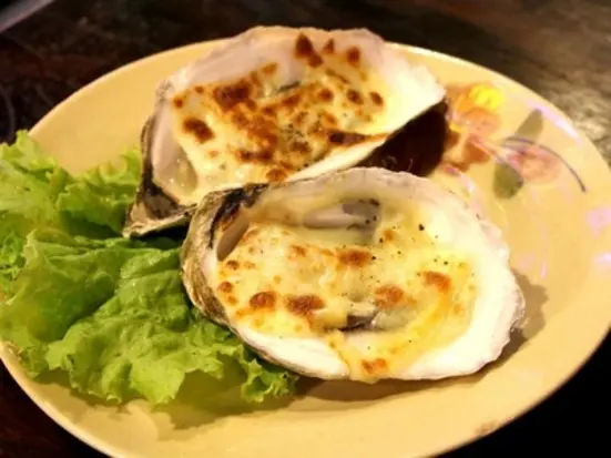 牡蠣の上にとろりと溶けたチーズが添えられています