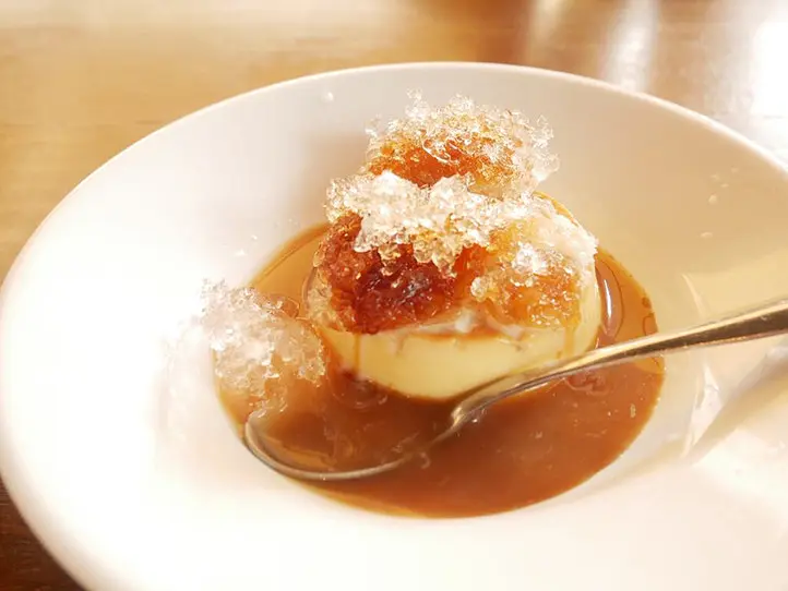 日本で食べるプリンとの1番の違いは、氷が乗っていることです!