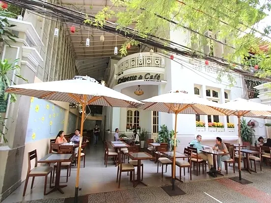 聖母マリア教会と統一会堂の中間にあるカフェ。日中は欧米人観光客の憩いの場所となっていて、 オープンエアではパラソルの咲いたテーブルで情緒溢れる時間をおくることができます。こちらの名物はクレープ。一番人気の「ミッドナイトパリ(84,000ドン)」は厚いクレープ生地の上に甘いチョコレートソースとクリームがふんだんにかけられていて美味。それ以外にもパスタやサラダ、ドリンク類も充実しています。ただ、おすすめはクレープ。パスタは美味しいのですが、値段がちょっと高め。