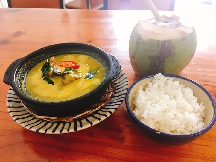 かなりスープ系のあっさりしたルーで、ココナッツの甘味が口いっぱいに広がります。具材は、かぼちゃ、じゃがいも、ナスなど。どれもよく煮込まれていて柔らかく、野菜の甘さが感じられました。