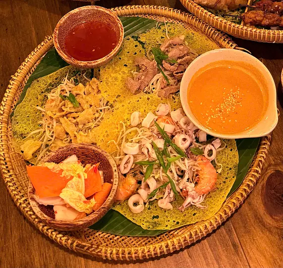 バインセオ(Bánh Xèo)は、外はパリパリ、中はもちっとした食感が特徴のベトナム風お好み焼き。