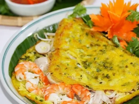 南部名物バインセオ。ベトナム風お好み焼きとして紹介されることが多いですが、味は全く異なります。