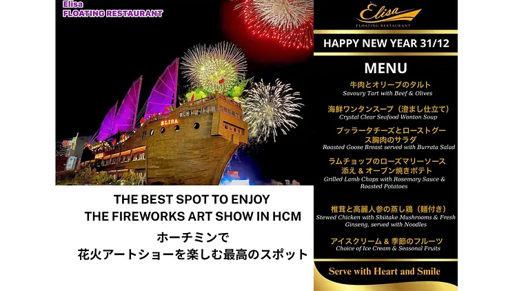Elisa Floating Restaurantは、ホーチミン市のグルメシーンに新しい風を吹き込む存在。観光の締めくくりに、あるいは特別な日の記念に。夜景とディナーが織りなす贅沢な時間を、サイゴン川で体験してみませんか?ぜひ早めに特別席を予約して、ホーチミンの夜を特別なものに仕立てましょう。