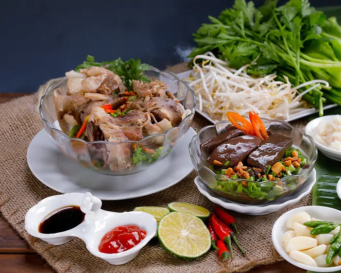 ホンファットヌードルは、チャオズーとクメール文化の食文化の融合を象徴しており、1970年代にサイゴンに紹介されました。このシンプルな店では、フレンドリーなサービスが必須であり、終日営業していますが、地元の人々は特に朝食に訪れます。柔らかい米の麺スープには、ひき肉、レバー、新鮮なタイガーシュリンプ、または煮込んだ血糊が添えられ、様々なハーブやもやしが添えられています。チャーゴートムクア(エビとカニの春巻き)は、素晴らしい前菜として人気です。