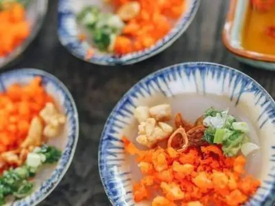 スプーンで十字に切って、ヌクマムを垂らして口に運んでください。フエ料理の王道です。