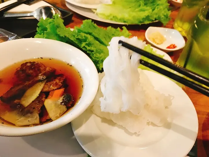 このブンを、つけダレにつけながら食べます。ヌックマムの酸っぱい味わいが、とっても爽やかで暑いベトナムに最高です。こちらのお店、ヌックマムという魚を発行させて作ったベトナム料理に欠かすことのできない調味料が、あまり魚臭くないのも特徴!日本人の口に合いますね。