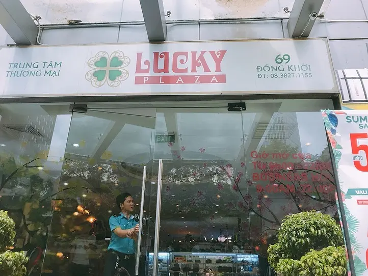 Lucky Plazaはお土産屋さんが立ち並ぶドンコイ通りとホーチミン像があるグエンフエ通りの間にあります。