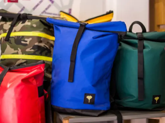 耐水性にカンバスを素材にしているので、雨天問題ありません。完全ハンドメイドのオリジナルバックパック。
