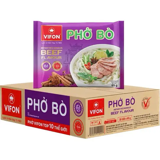 VifonやAcecookなどの有名ブランドがあり、牛肉味や鶏肉味など種類も豊富。