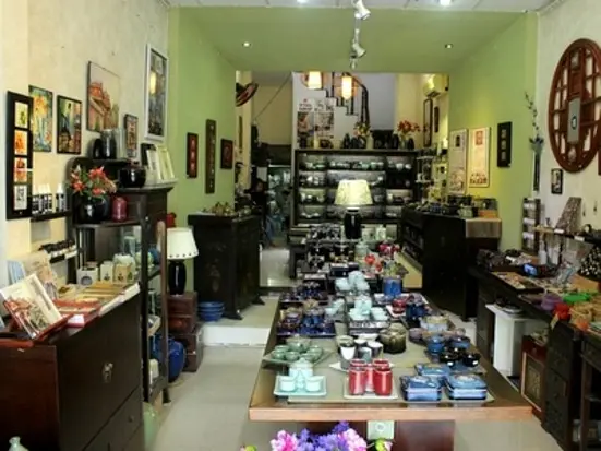ベトナム人の職人が一つ一つ時間をかけ、丁寧に作り上げた陶磁器は、ベトナムの伝統工芸品。遡れば中国への献上品として、そして日本やオランダといった諸外国への交易品として発展しました。ベトナムの陶磁器は日本や中国のように堅苦しいデザインではなく、模様、形ともに実に自由。それはフランス統治時代にベトナムが受容した、フランスの自由と優美さであります。そんなベトナム伝統の陶磁器はお土産にも最適。実用性があるので家族や友人、会社の上司にも喜ばれます。こちらのドンヤーは陶磁器の中でもシンプルかつベトナムの伝統を重んじたものを扱っています。この色はそこらへんのアマチュア職人では出せません。おすすめはベトナムの象徴でもあるロータスの器19万5000ドン。緑色のグリーンセラミックで葉の形をして少し歪みがあるのが特徴。長く使える一品です。
