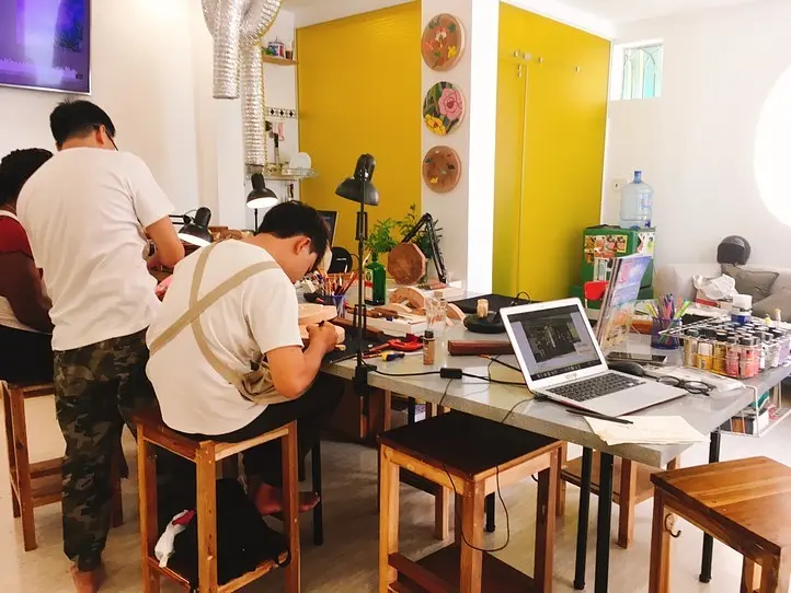 アートポスターや油絵を売っているお店がそこここにあり、いつものホーチミンとは少し違う雰囲気が味わえるのですが、そこに、ベトナムの伝統的な木彫りの体験が出来るお店があります。