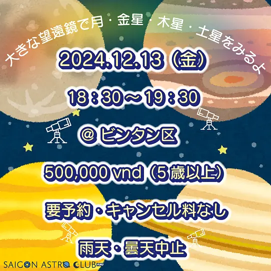 12月13日(金)に専用の望遠鏡で天体観測をするスターパーティを開催します。