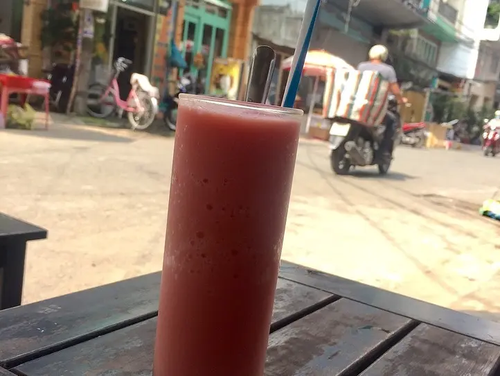 ここのカフェのオススメは何と言ってもシントー(ベトナム版フルーツスムージー)。