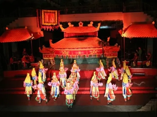 約700年の歴史を持つ歌劇。陳朝3代皇帝の時代にモンゴル軍の捕虜から伝播されたと言われています。いかにも中国風の派手な冠や衣装、化粧が特徴で、こん棒を使って演武します。