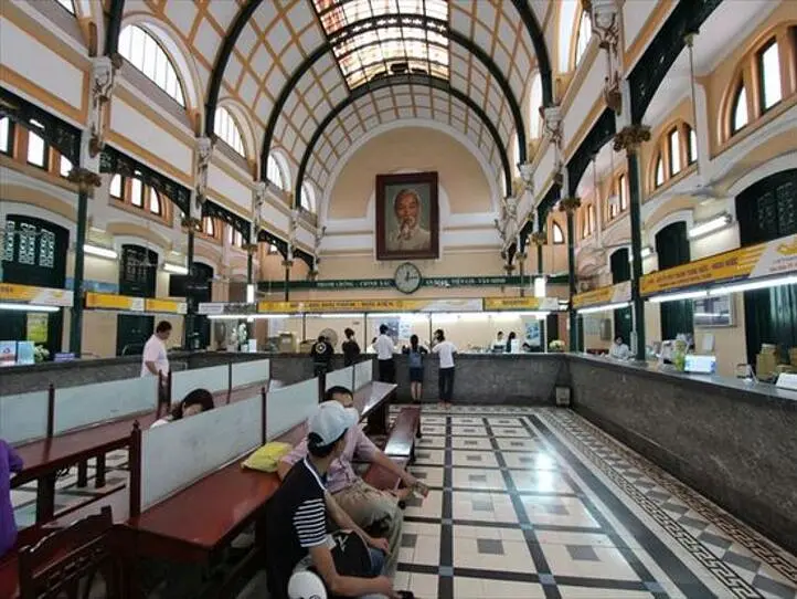 アーチ状の天井は奥行きがあり、その最奥部にはホーチミン主席の大きな肖像画があります。郵便局として、そして観光名所として機能していますので、現地のベトナム人と外国人旅行客が多く行き交っています。それにしても、これほど豪華で美しい建物が郵便局で、しかも現在も現役で利用されているというのは、日本人からしたら少し羨ましいですね。